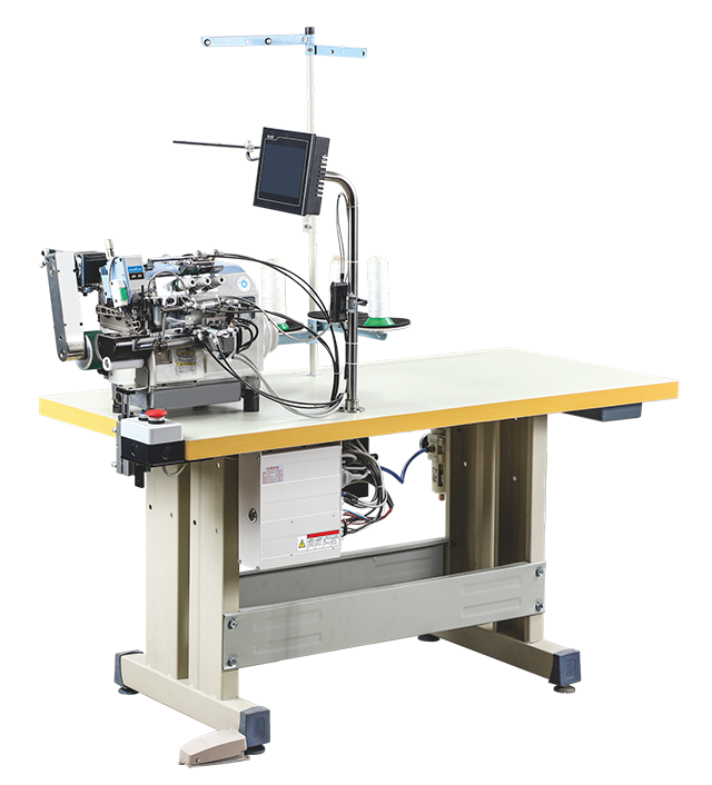 • Equipped with an AC servo control box and a touchscreen operation panel, the fully visual human.machine interface allows quick parameter adjustments with a light touch of the finger. lt supportsbilingual operation in both Chinese and English. One-step stitching process with enhancedefficiency.